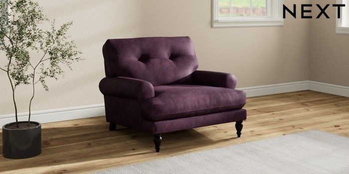 7.2.10 Erin Buttoned Back Deep Relaxed Sit Armchair Plush Chenille Dark Plum Purple High Classic Turned - Dark | Made Click here to use our website with more accessibility support, for example screen readers