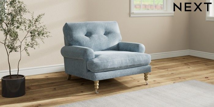 7.2.10 Erin Buttoned Back Deep Relaxed Sit Armchair Plush Chenille Light Blue High Classic Turned Chrome Castor - Light | Made Click here to use our website with more accessibility support, for example screen readers