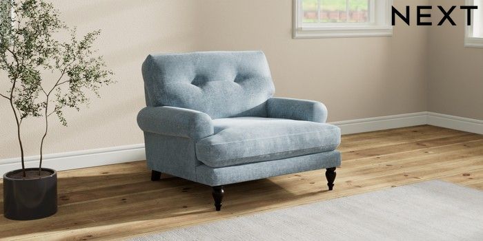 7.2.10 Erin Buttoned Back Deep Relaxed Sit Armchair Plush Chenille Light Blue High Classic Turned - Dark | Made Click here to use our website with more accessibility support, for example screen readers