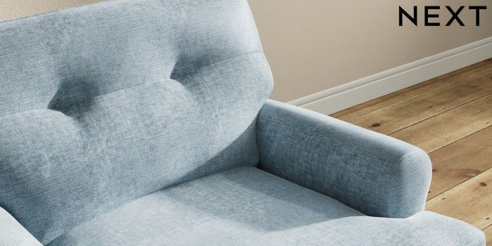 7.2.10 Erin Buttoned Back Deep Relaxed Sit Armchair Plush Chenille Light Blue High Classic Turned - Mid | Made Click here to use our website with more accessibility support, for example screen readers