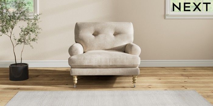 7.2.10 Erin Buttoned Back Deep Relaxed Sit Armchair Plush Chenille Light Natural High Classic Turned Chrome Castor - Light | Made Click here to use our website with more accessibility support, for example screen readers