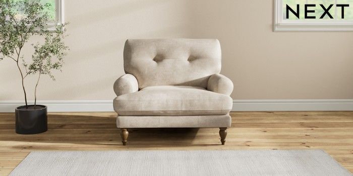 7.2.10 Erin Buttoned Back Deep Relaxed Sit Armchair Plush Chenille Light Natural High Classic Turned - Mid | Made Click here to use our website with more accessibility support, for example screen readers