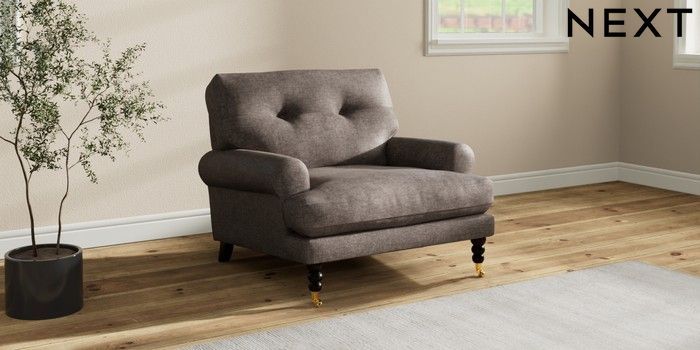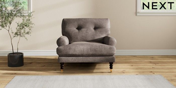 7.2.10 Erin Buttoned Back Deep Relaxed Sit Armchair Plush Chenille Mink Brown High Classic Turned Brass Castor - Dark | Made Click here to use our website with more accessibility support, for example screen readers