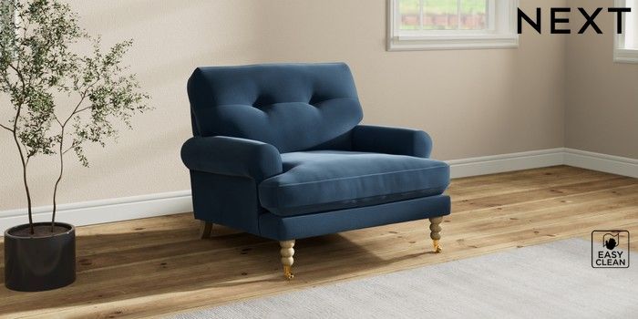 7.2.10 Erin Buttoned Back Deep Relaxed Sit Armchair Plush Velvet Easy Clean Airforce Blue High Classic Turned Brass Castor - Light | Made Click here to use our website with more accessibility support, for example screen readers