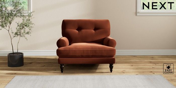 7.2.10 Erin Buttoned Back Deep Relaxed Sit Armchair Plush Velvet Easy Clean Ginger Orange High Classic Turned - Dark | Made Click here to use our website with more accessibility support, for example screen readers