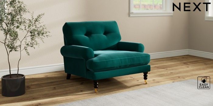 7.2.10 Erin Buttoned Back Deep Relaxed Sit Armchair Plush Velvet Easy Clean Juniper Green High Classic Turned Brass Castor - Dark | Made Click here to use our website with more accessibility support, for example screen readers
