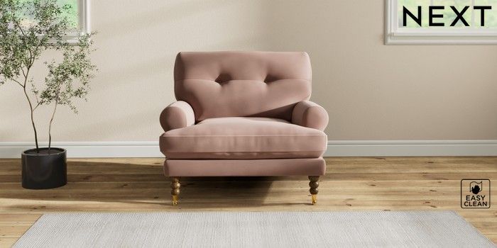 7.2.10 Erin Buttoned Back Deep Relaxed Sit Armchair Plush Velvet Easy Clean Mid Natural High Classic Turned Brass Castor - Mid | Made Click here to use our website with more accessibility support, for example screen readers