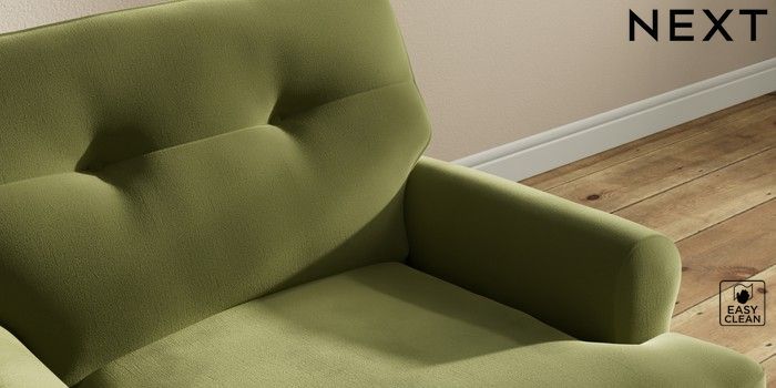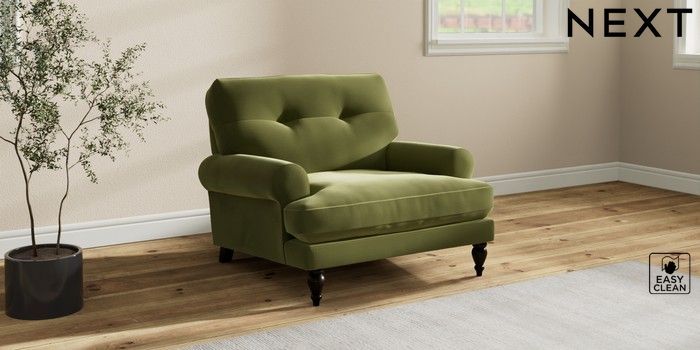 7.2.10 Erin Buttoned Back Deep Relaxed Sit Armchair Plush Velvet Easy Clean Mid Olive Green High Classic Turned - Dark | Made Click here to use our website with more accessibility support, for example screen readers