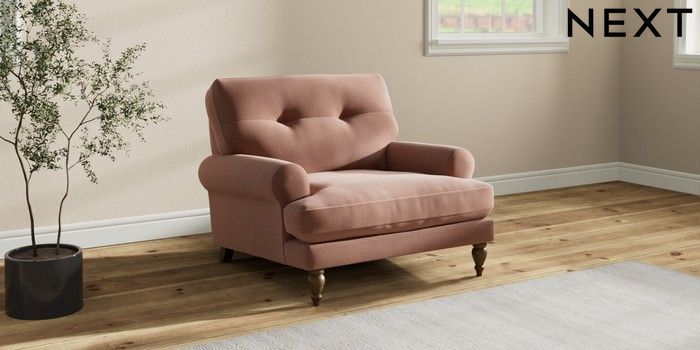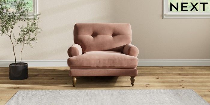 7.2.10 Erin Buttoned Back Deep Relaxed Sit Armchair Relaxed Linen Look Light Rust Brown High Classic Turned - Mid | Made Click here to use our website with more accessibility support, for example screen readers