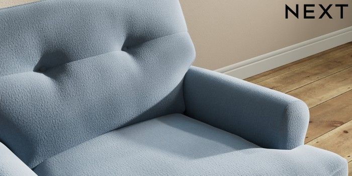 7.2.10 Erin Buttoned Back Deep Relaxed Sit Armchair Relaxed Linen Look Mid Blue High Classic Turned Brass Castor - Light | Made Click here to use our website with more accessibility support, for example screen readers