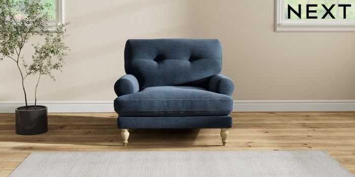 7.2.10 Erin Buttoned Back Deep Relaxed Sit Armchair Ripple Chenille Dark Blue High Classic Turned - Light | Made Click here to use our website with more accessibility support, for example screen readers