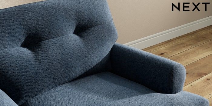 7.2.10 Erin Buttoned Back Deep Relaxed Sit Armchair Ripple Chenille Dark Blue High Classic Turned - Mid | Made Click here to use our website with more accessibility support, for example screen readers