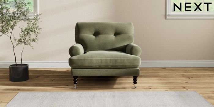 7.2.10 Erin Buttoned Back Deep Relaxed Sit Armchair Ripple Chenille Mid Moss Green High Classic Turned Chrome Castor - Dark | Made Click here to use our website with more accessibility support, for example screen readers