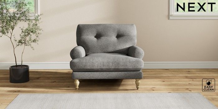 7.2.10 Erin Buttoned Back Deep Relaxed Sit Armchair Tweedy Blend Easy Clean Dark Grey High Classic Turned - Light | Made Click here to use our website with more accessibility support, for example screen readers