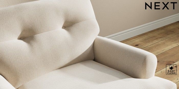 7.2.10 Erin Buttoned Back Deep Relaxed Sit Armchair Tweedy Blend Easy Clean Oyster High Classic Turned - Mid | Made Click here to use our website with more accessibility support, for example screen readers