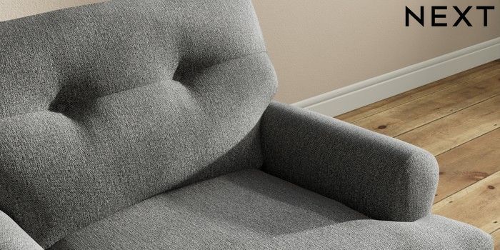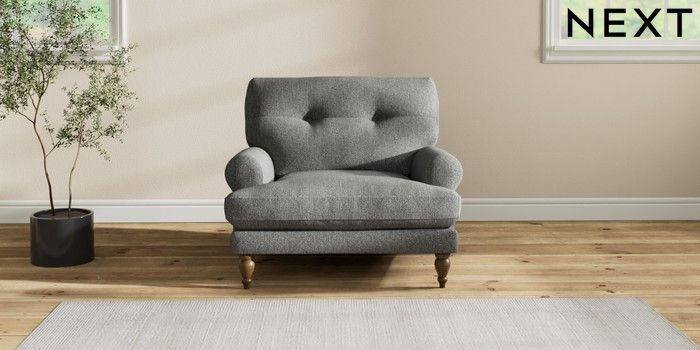 7.2.10 Erin Buttoned Back Deep Relaxed Sit Armchair Tweedy Chenille Dark Grey High Classic Turned - Mid | Made Click here to use our website with more accessibility support, for example screen readers