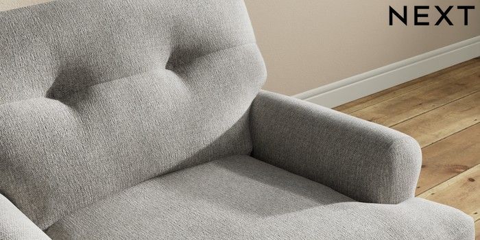 7.2.10 Erin Buttoned Back Deep Relaxed Sit Armchair Tweedy Chenille Mid Grey High Classic Turned Chrome Castor - Mid | Made Click here to use our website with more accessibility support, for example screen readers