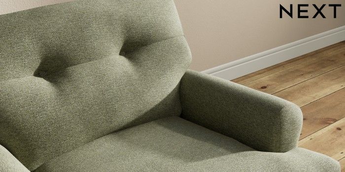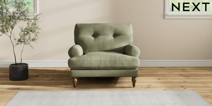 7.2.10 Erin Buttoned Back Deep Relaxed Sit Armchair Tweedy Chenille Mid Moss Green High Classic Turned - Mid | Made Click here to use our website with more accessibility support, for example screen readers