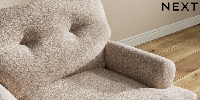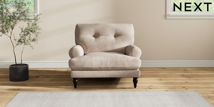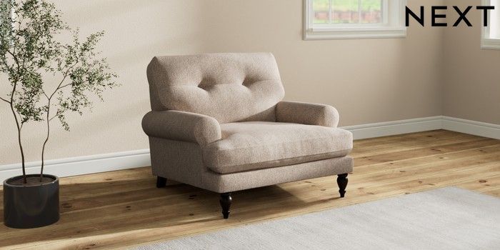 7.2.10 Erin Buttoned Back Deep Relaxed Sit Armchair Tweedy Chenille Mid Natural High Classic Turned - Dark | Made Click here to use our website with more accessibility support, for example screen readers