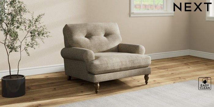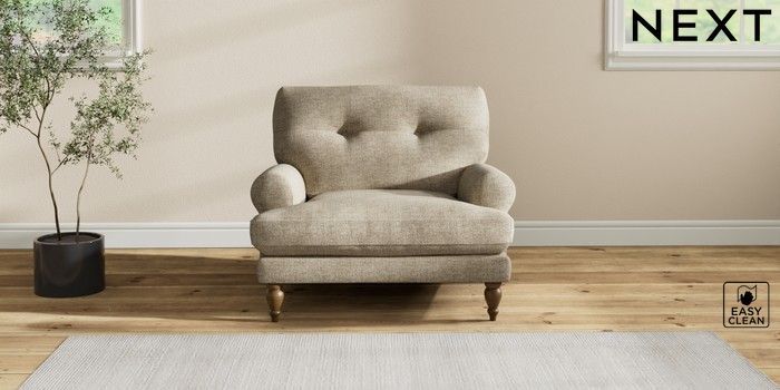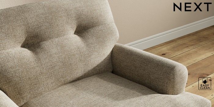7.2.10 Erin Buttoned Back Deep Relaxed Sit Armchair Woven Chenille Easy Clean Mid Natural High Classic Turned - Mid | Made Click here to use our website with more accessibility support, for example screen readers