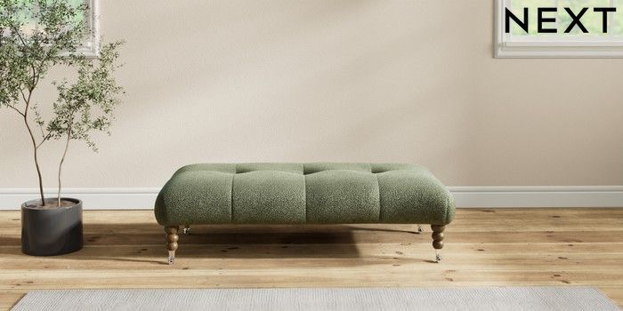 7.2.10 Erin Buttoned Back Deep Relaxed Sit Extra Large Footstool Boucle Chenille Dark Moss Green High Classic Turned Chrome Castor - Mid | Made Click here to use our website with more accessibility support, for example screen readers
