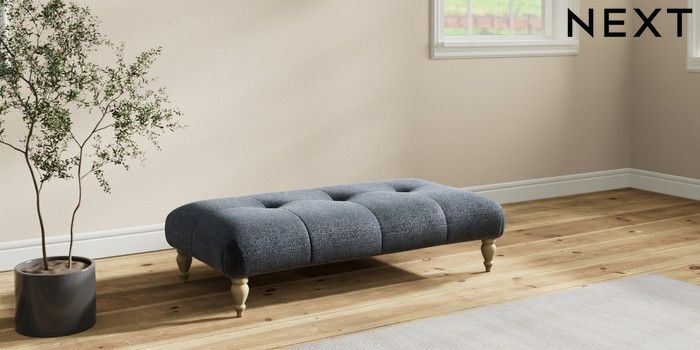 7.2.10 Erin Buttoned Back Deep Relaxed Sit Extra Large Footstool Boucle Chenille Dark Slate Blue High Classic Turned - Light | Made Click here to use our website with more accessibility support, for example screen readers