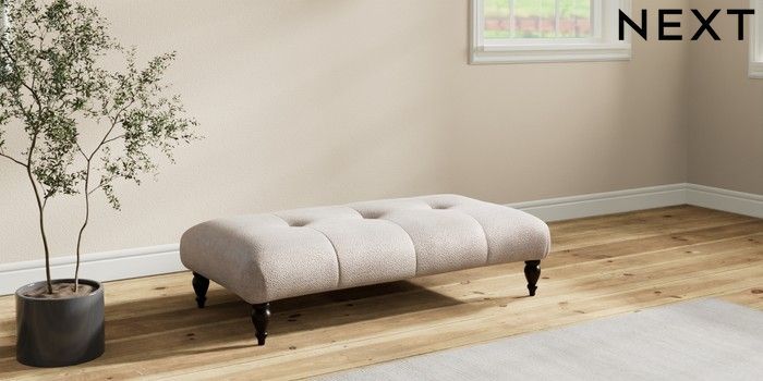 7.2.10 Erin Buttoned Back Deep Relaxed Sit Extra Large Footstool Boucle Chenille Light Natural High Classic Turned - Dark | Made Click here to use our website with more accessibility support, for example screen readers