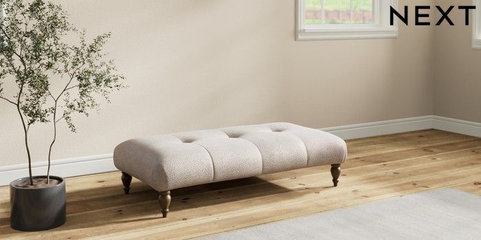 7.2.10 Erin Buttoned Back Deep Relaxed Sit Extra Large Footstool Boucle Chenille Light Natural High Classic Turned - Mid | Made Click here to use our website with more accessibility support, for example screen readers