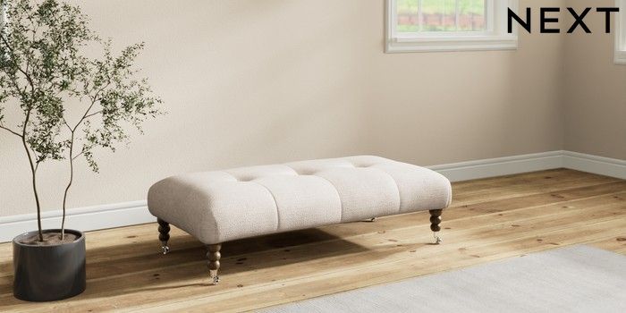 7.2.10 Erin Buttoned Back Deep Relaxed Sit Extra Large Footstool Boucle Chenille Oyster High Classic Turned Chrome Castor - Mid | Made Click here to use our website with more accessibility support, for example screen readers