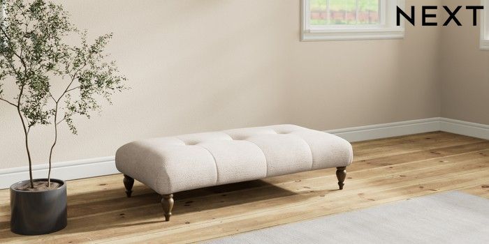 7.2.10 Erin Buttoned Back Deep Relaxed Sit Extra Large Footstool Boucle Chenille Oyster High Classic Turned - Mid | Made Click here to use our website with more accessibility support, for example screen readers
