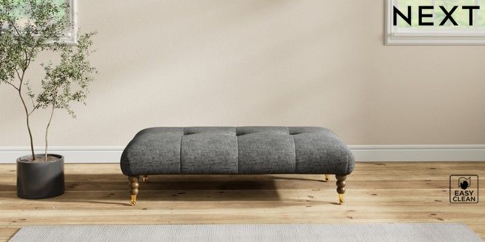 7.2.10 Erin Buttoned Back Deep Relaxed Sit Extra Large Footstool Boucle Weave Easy Clean Charcoal Grey High Classic Turned Brass Castor - Mid | Made Click here to use our website with more accessibility support, for example screen readers