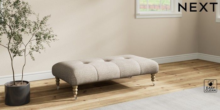 7.2.10 Erin Buttoned Back Deep Relaxed Sit Extra Large Footstool Chunky Boucle Easy Clean Mid Natural High Classic Turned Chrome Castor - Light | Made Click here to use our website with more accessibility support, for example screen readers