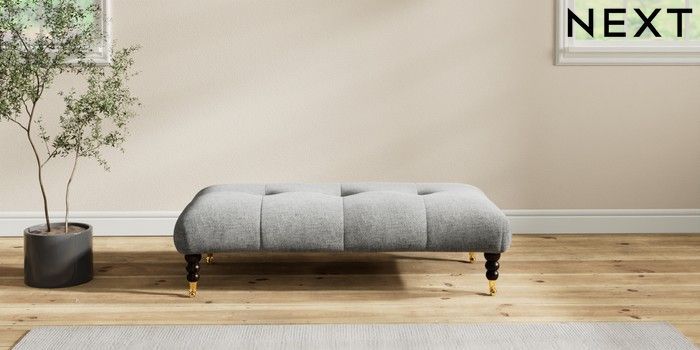 7.2.10 Erin Buttoned Back Deep Relaxed Sit Extra Large Footstool Chunky Chenille Dark Grey High Classic Turned Brass Castor - Dark | Made Click here to use our website with more accessibility support, for example screen readers