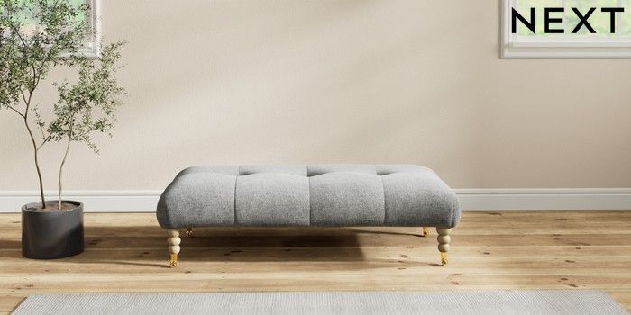 7.2.10 Erin Buttoned Back Deep Relaxed Sit Extra Large Footstool Chunky Chenille Dark Grey High Classic Turned Brass Castor - Light | Made Click here to use our website with more accessibility support, for example screen readers