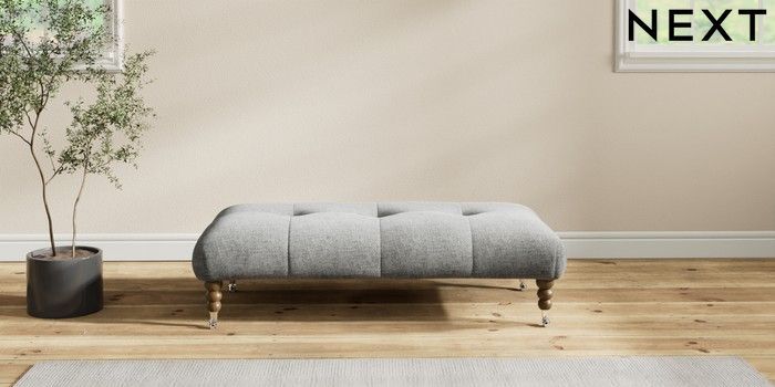 7.2.10 Erin Buttoned Back Deep Relaxed Sit Extra Large Footstool Chunky Chenille Dark Grey High Classic Turned Chrome Castor - Mid | Made Click here to use our website with more accessibility support, for example screen readers