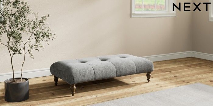 7.2.10 Erin Buttoned Back Deep Relaxed Sit Extra Large Footstool Chunky Chenille Dark Grey High Classic Turned - Mid | Made Click here to use our website with more accessibility support, for example screen readers