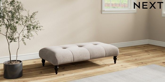7.2.10 Erin Buttoned Back Deep Relaxed Sit Extra Large Footstool Chunky Chenille Light Dove High Classic Turned - Dark | Made Click here to use our website with more accessibility support, for example screen readers