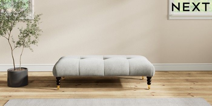 7.2.10 Erin Buttoned Back Deep Relaxed Sit Extra Large Footstool Chunky Chenille Light Grey High Classic Turned Brass Castor - Dark | Made Click here to use our website with more accessibility support, for example screen readers