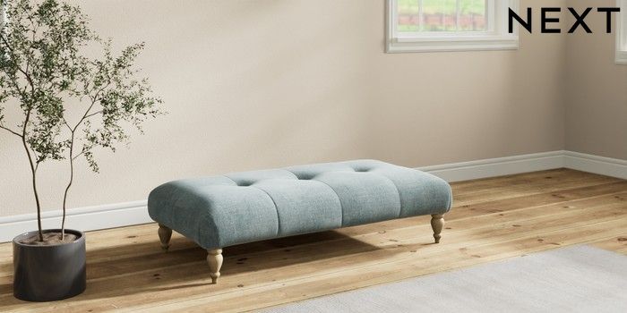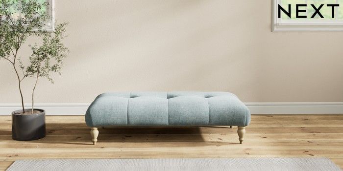 7.2.10 Erin Buttoned Back Deep Relaxed Sit Extra Large Footstool Chunky Chenille Light Teal Green High Classic Turned - Light | Made Click here to use our website with more accessibility support, for example screen readers