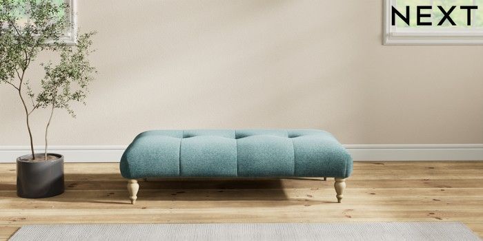 7.2.10 Erin Buttoned Back Deep Relaxed Sit Extra Large Footstool Chunky Chenille Mid Teal Green High Classic Turned - Light | Made Click here to use our website with more accessibility support, for example screen readers