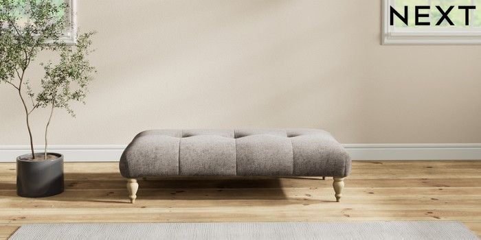 7.2.10 Erin Buttoned Back Deep Relaxed Sit Extra Large Footstool Chunky Chenille Mink Brown High Classic Turned - Light | Made Click here to use our website with more accessibility support, for example screen readers