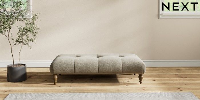 7.2.10 Erin Buttoned Back Deep Relaxed Sit Extra Large Footstool Chunky Marl Light Olive Green High Classic Turned - Mid | Made Click here to use our website with more accessibility support, for example screen readers
