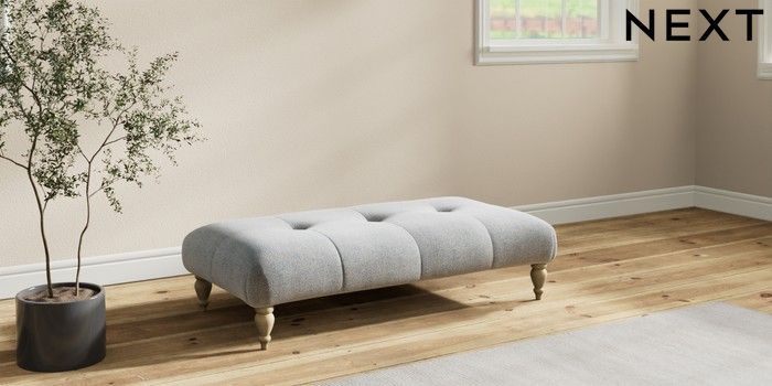 7.2.10 Erin Buttoned Back Deep Relaxed Sit Extra Large Footstool Chunky Marl Mid Grey High Classic Turned - Light | Made Click here to use our website with more accessibility support, for example screen readers