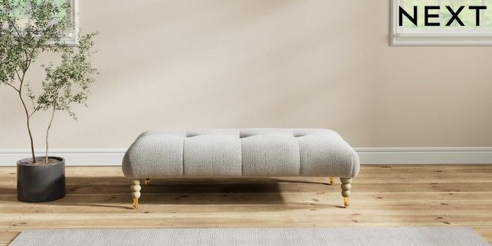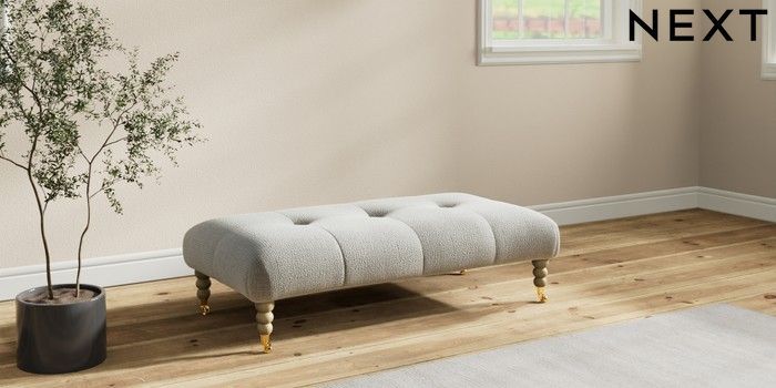 7.2.10 Erin Buttoned Back Deep Relaxed Sit Extra Large Footstool Chunky Texture Dove High Classic Turned Brass Castor - Light | Made Click here to use our website with more accessibility support, for example screen readers