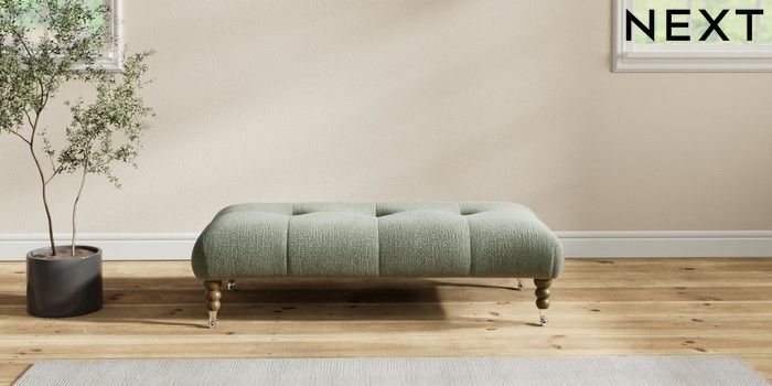 7.2.10 Erin Buttoned Back Deep Relaxed Sit Extra Large Footstool Chunky Texture Mid Forest Green High Classic Turned Chrome Castor - Mid | Made Click here to use our website with more accessibility support, for example screen readers