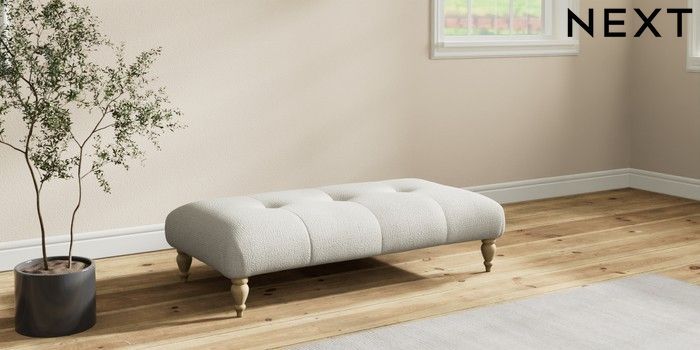 7.2.10 Erin Buttoned Back Deep Relaxed Sit Extra Large Footstool Chunky Texture Oyster High Classic Turned - Light | Made Click here to use our website with more accessibility support, for example screen readers