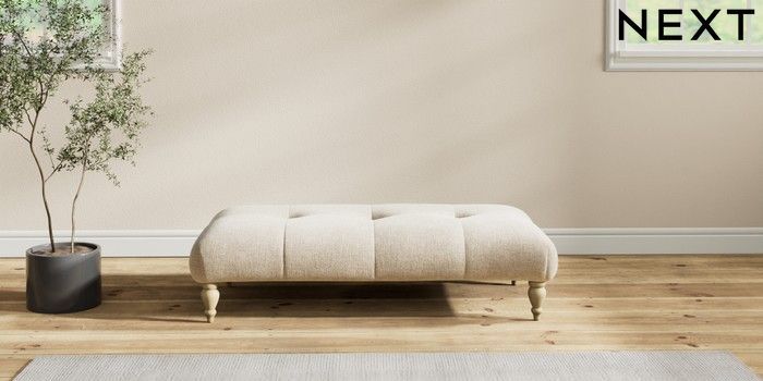 7.2.10 Erin Buttoned Back Deep Relaxed Sit Extra Large Footstool Chunky Weave Cream High Classic Turned - Light | Made Click here to use our website with more accessibility support, for example screen readers