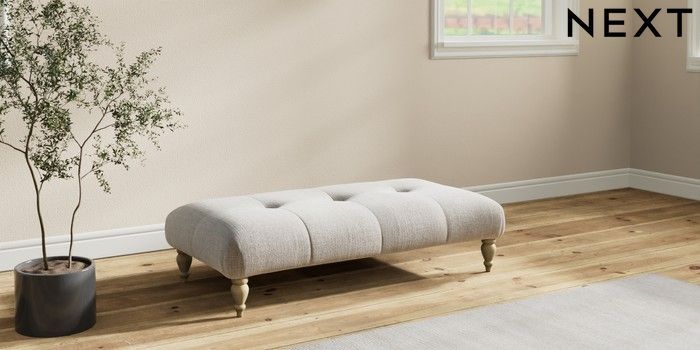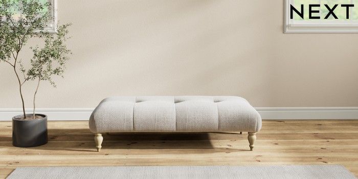 7.2.10 Erin Buttoned Back Deep Relaxed Sit Extra Large Footstool Chunky Weave Dove Grey High Classic Turned - Light | Made Click here to use our website with more accessibility support, for example screen readers