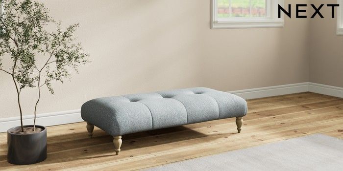 7.2.10 Erin Buttoned Back Deep Relaxed Sit Extra Large Footstool Chunky Weave Mid Blue High Classic Turned - Light | Made Click here to use our website with more accessibility support, for example screen readers