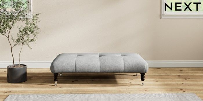 7.2.10 Erin Buttoned Back Deep Relaxed Sit Extra Large Footstool Chunky Weave Mid Grey High Classic Turned Chrome Castor - Dark | Made Click here to use our website with more accessibility support, for example screen readers
